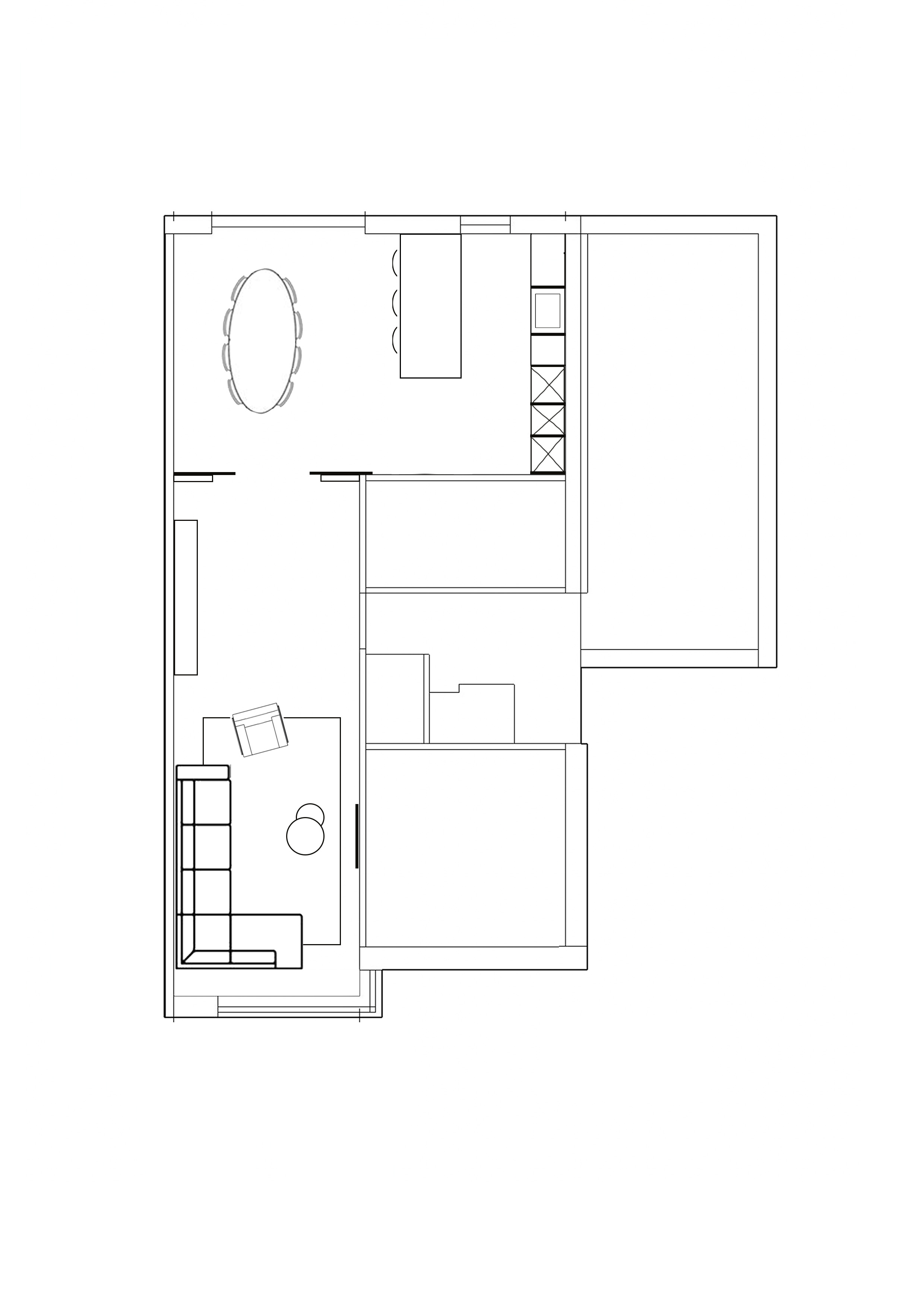 Het koppel had zelf nog geen duidelijke ideeën over waar de keuken en woonkamer moesten komen, dus had ik eerst verschillende indelingen voor ze ontworpen. Deze ontwerpen hebben we samen besproken en uiteindelijk kwamen we tot één definitieve indeling.