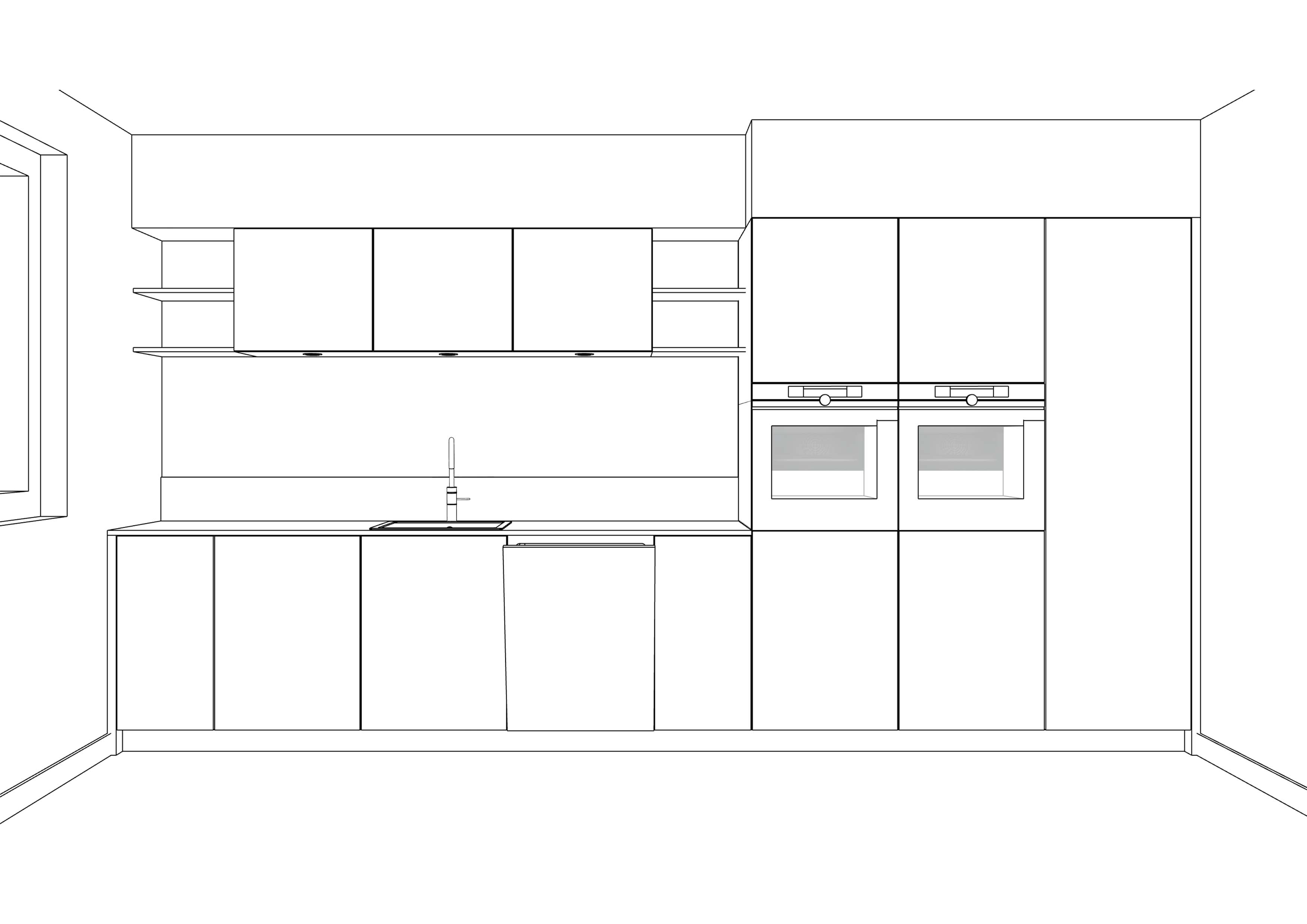 Met die indeling ging ik aan de slag om het ontwerp in 3D uit te werken. Een bijzonder leuk aspect van dit project was dat ik de keuken helemaal zelf mocht ontwerpen. De man van het koppel werkte namelijk bij een bedrijf dat meubels op maat maakt, waardoor de keuken daar ook gerealiseerd kon worden.