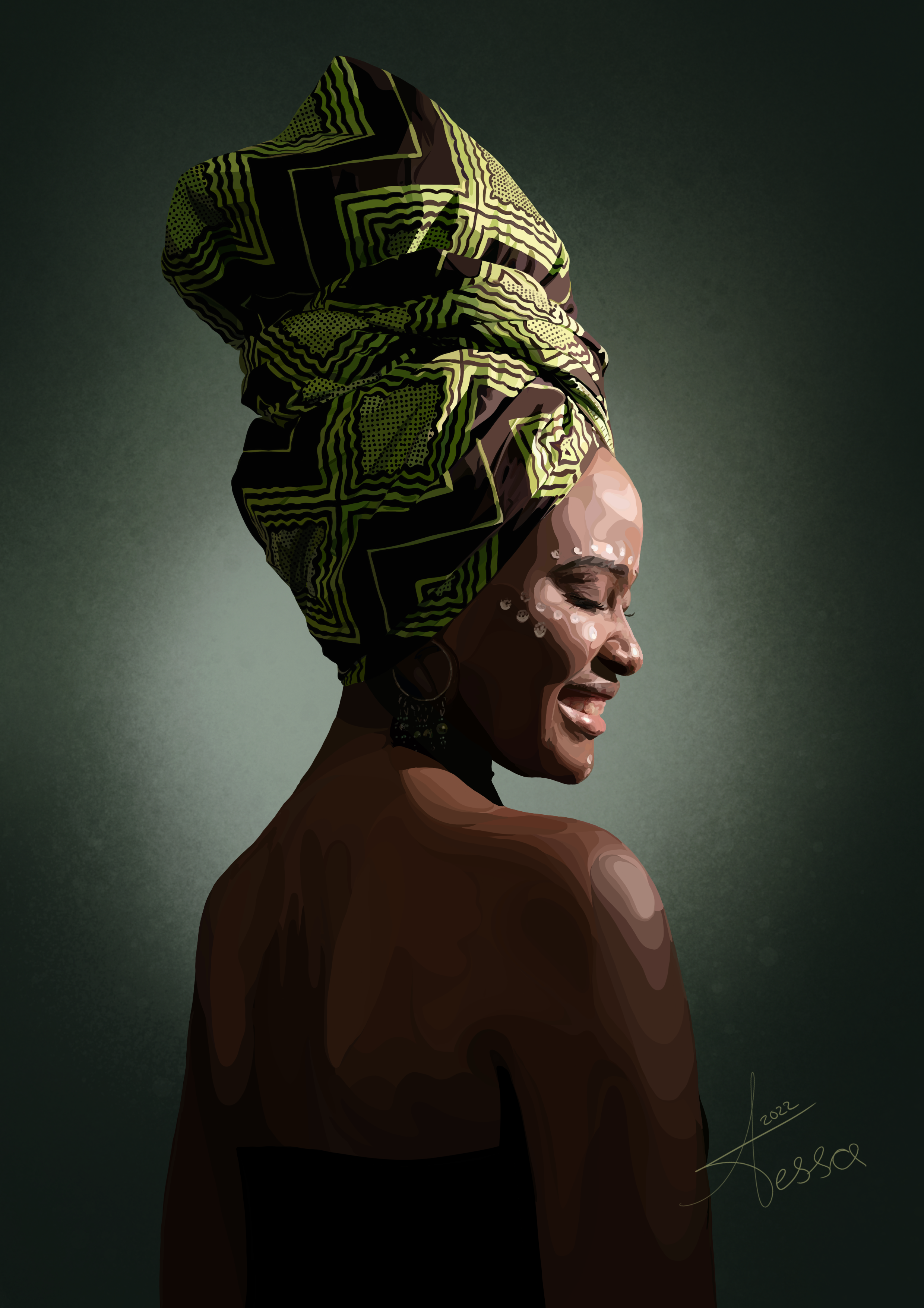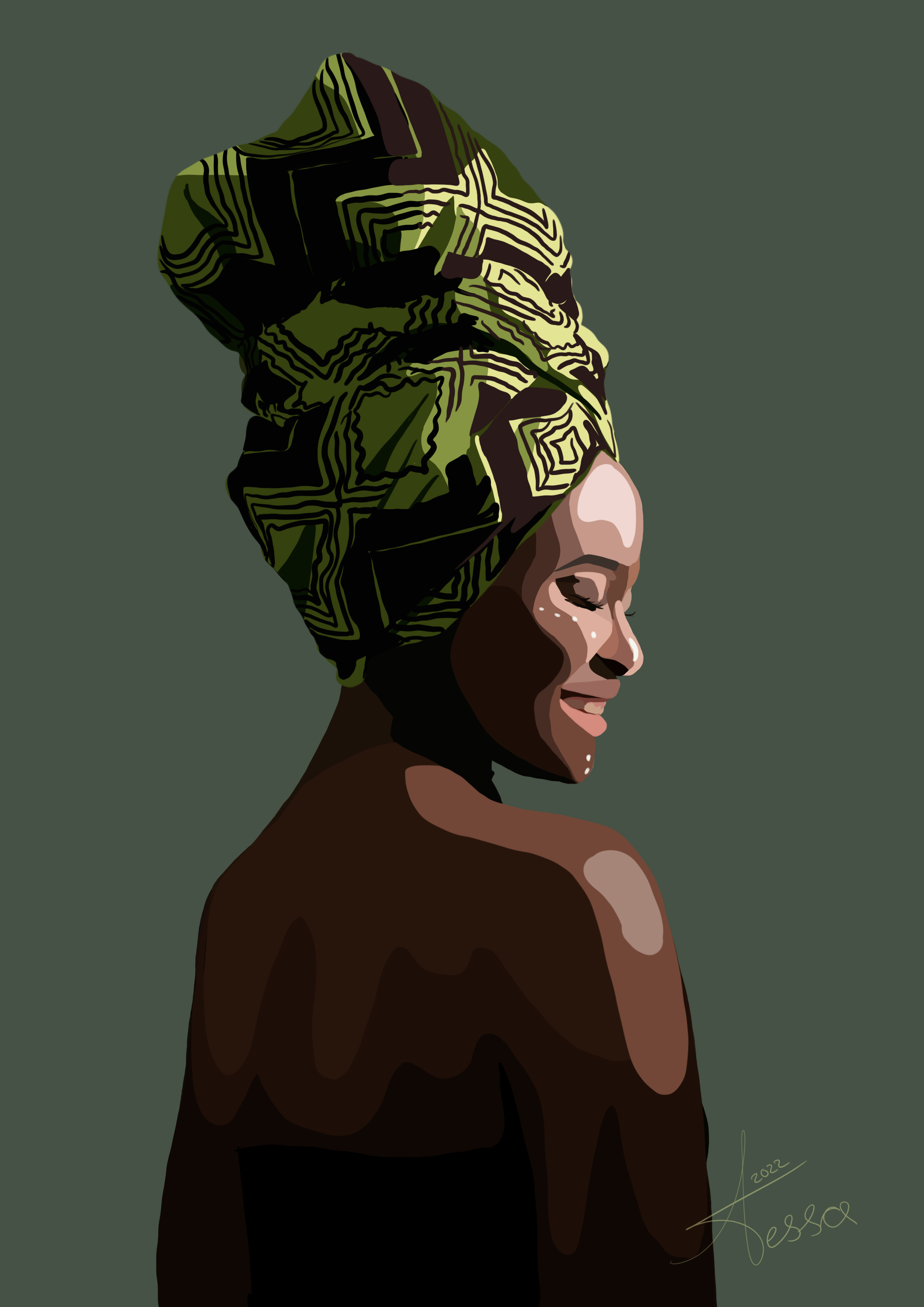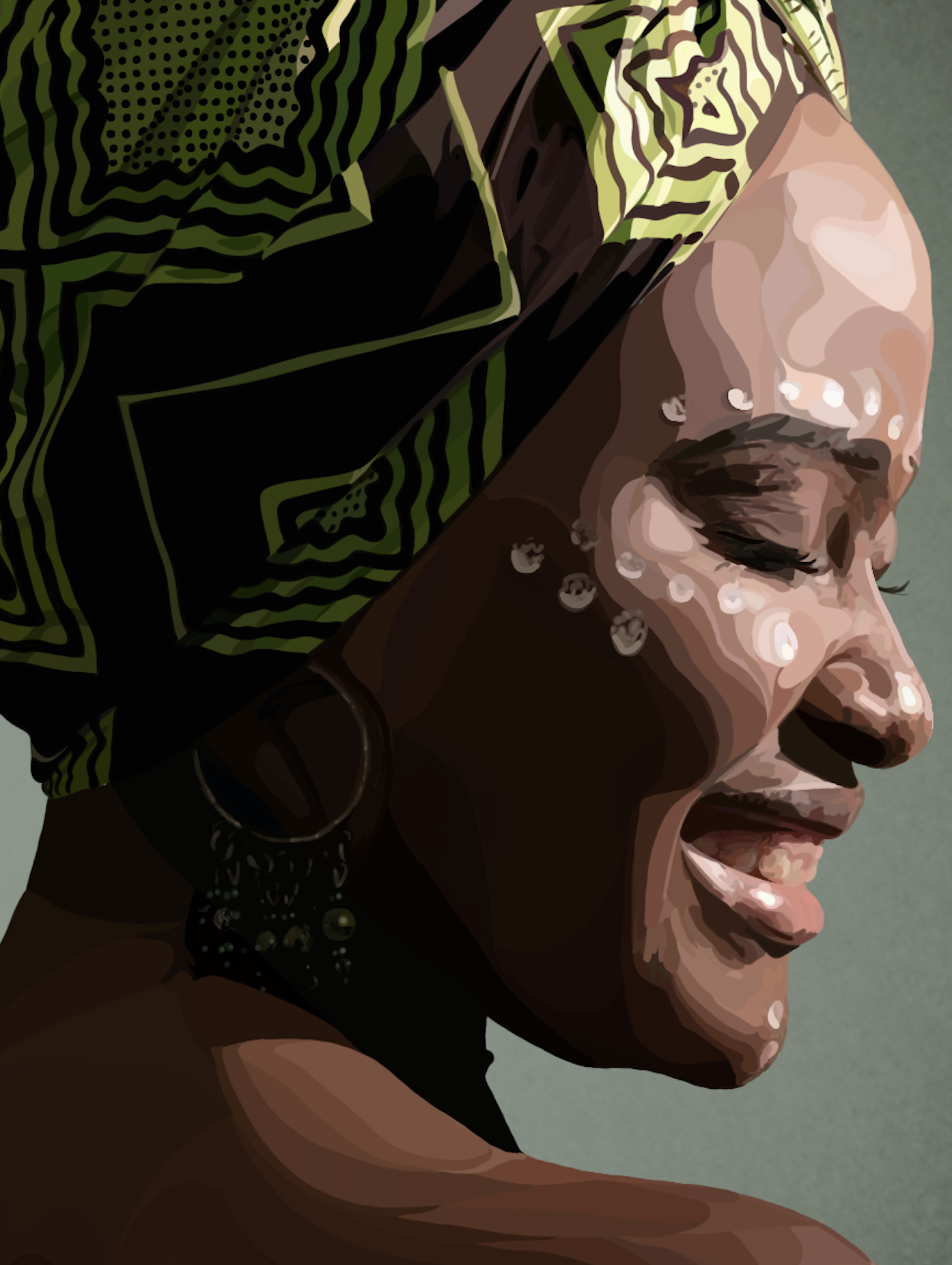 Om te beginnen was ik eerst op zoek gegaan naar een foto die geschikt zou zijn voor mijn bijzondere tekenstijl met vlakken. Per toeval kwam ik deze foto tegen en kon ik het al helemaal voor me zien. Op het eerste gezicht leek er niet veel kleurverschil te zijn, vooral niet bij de schouders van het model. Maar schijn bedriegt; er waren zeker veel subtiele kleurverschillen.