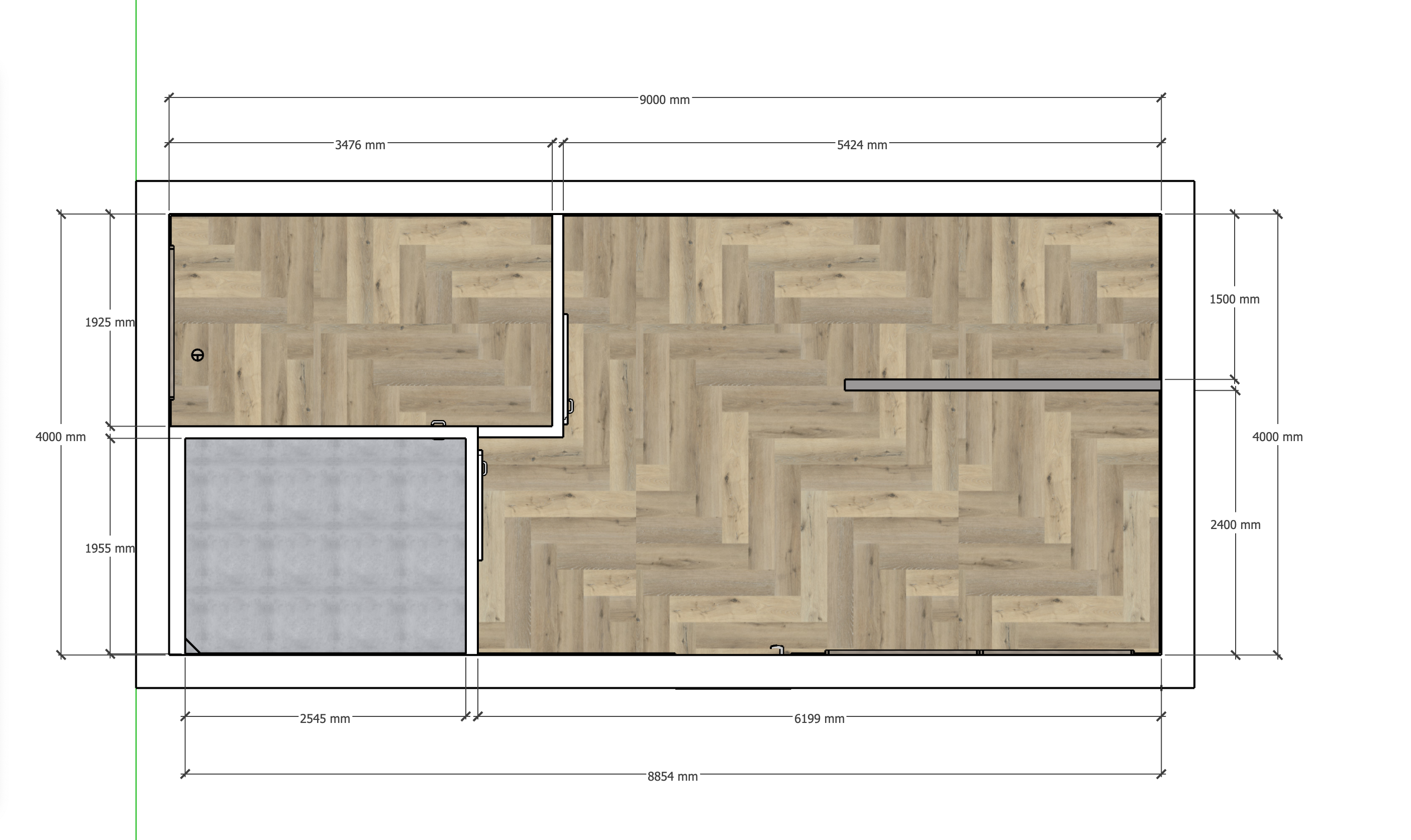 Bij deze opdracht was de klant nog niet zeker of ze een tiny house zelf zouden bouwen of dat ze een standaard tiny house zouden kopen. Daarom hadden ze mij gevraagd om een ontwerp te maken. Het tiny house was bedoeld voor in de achtertuin, als tijdelijk onderkomen voor hun oma. Het belangrijkste was dat het huisje alles moest bevatten wat nodig is om comfortabel te wonen, zoals een woonkamer, keuken, eetgedeelte, slaapkamer, badkamer en een plek voor de wasmachine. De maximale afmetingen voor het huisje waren 9 bij 4 meter.