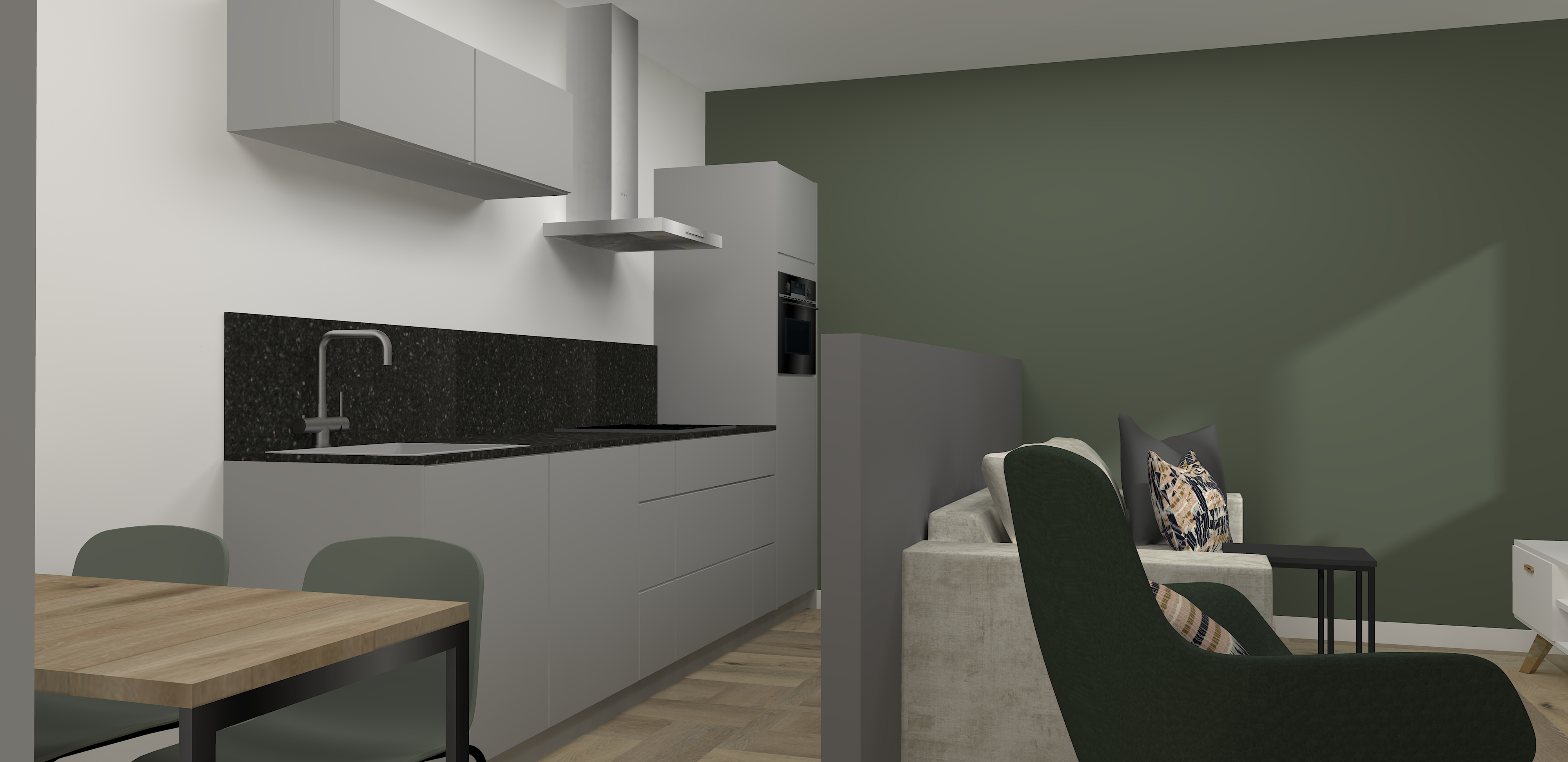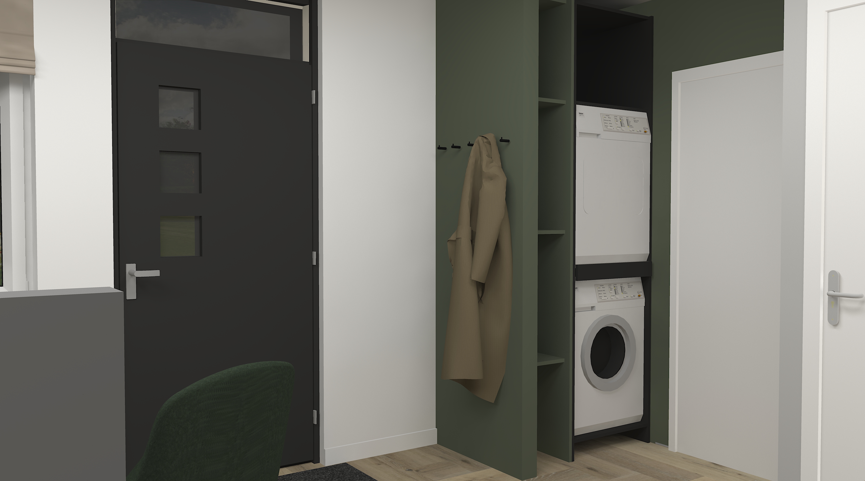 Met deze eisen ging ik aan de slag, en het was een flinke puzzel om alles een plek te geven binnen de beperkte ruimte. Na veel nadenken en ontwerpen kwam ik tot een doordachte indeling, die ik met veel plezier aan hen heb gepresenteerd.