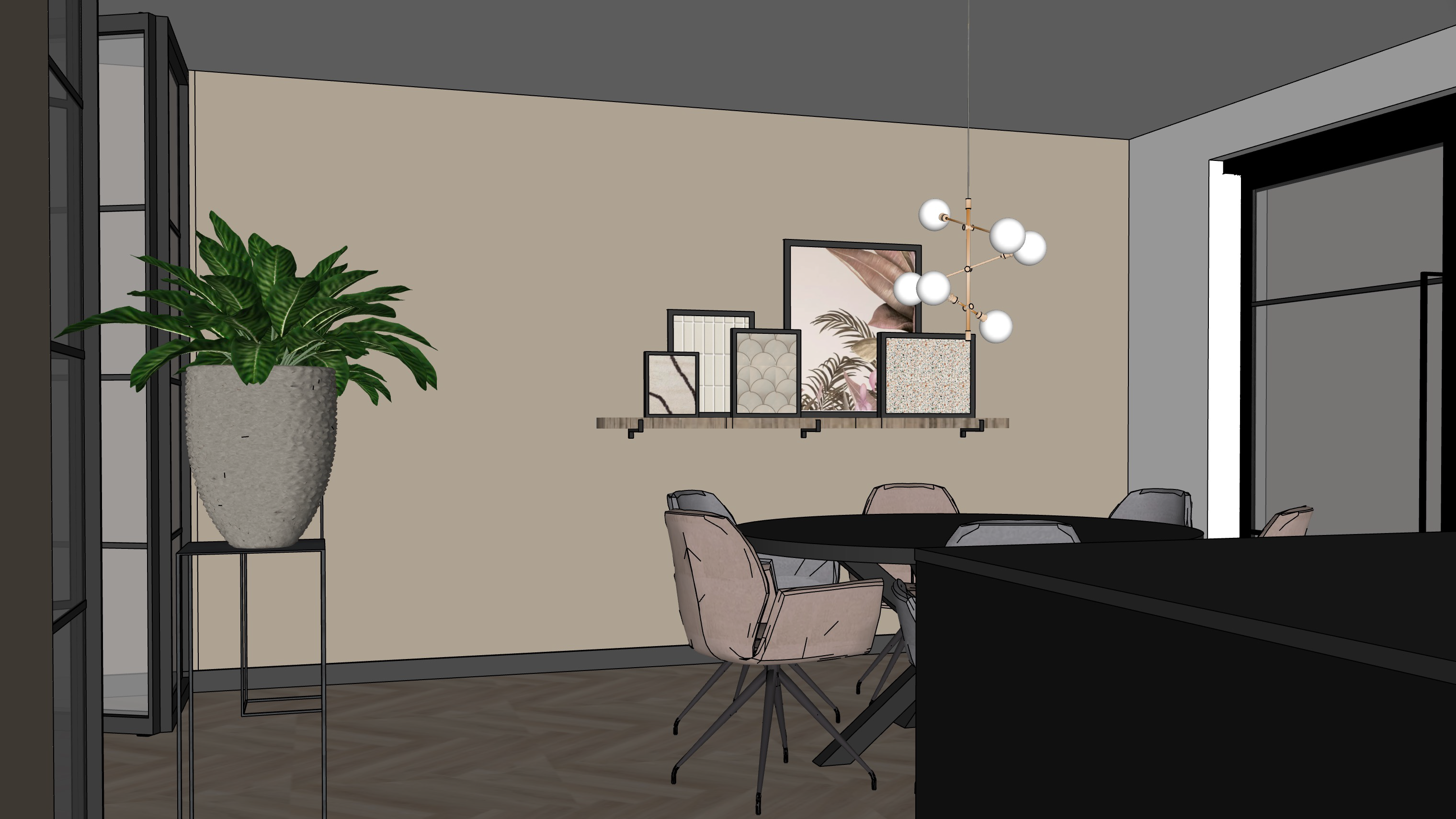 Met die indeling ging ik aan de slag om het ontwerp in 3D uit te werken. Een bijzonder leuk aspect van dit project was dat ik de keuken helemaal zelf mocht ontwerpen. De man van het koppel werkte namelijk bij een bedrijf dat meubels op maat maakt, waardoor de keuken daar ook gerealiseerd kon worden.