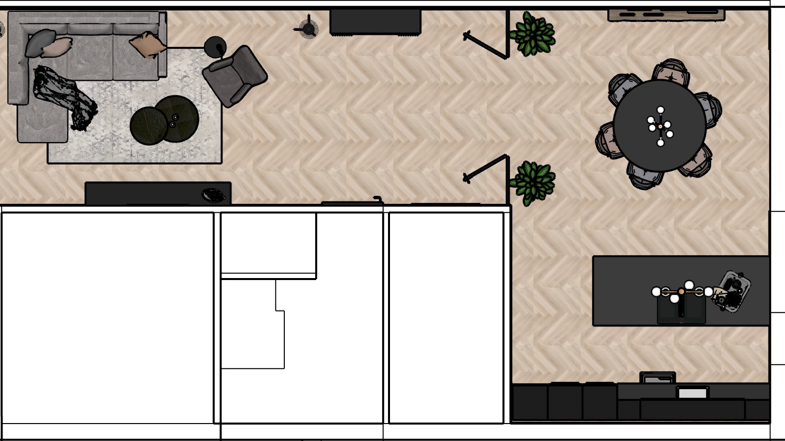 Voor dit project was ik gevraagd om de indeling te maken van een nieuwbouwwoning. Het koppel wilde graag kleiner gaan wonen, nu de kinderen het huis uit waren en hun oude woning te groot werd. Ze hadden een prachtige nieuwbouwwoning gevonden, waarvoor ik de opdracht kreeg om de L-vormige ruimte in te delen.